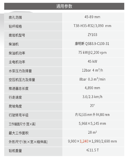 ZGYX-813掘進臺車,廣泛應(yīng)用于地下礦山開拓,小型隧道掘進,也可用于錨桿孔等加固工程。精心設(shè)計的ZGYX-813從外觀、配置、系統(tǒng)控制等各方面將提供客戶更優(yōu)質(zhì)的穿孔體驗。其基于安全考慮的底盤以及升降式安全頂棚,保證了設(shè)備的通過性與穩(wěn)定性,使操作員能夠始終處于安全的位置作業(yè);“直接”定位的鉆臂系統(tǒng)實現(xiàn)快速準確的鉆孔定位;配備的ZY104M鑿巖機功率可達20KW,其60HZ的頻率是高效鑿巖的有力保障,雙緩沖機構(gòu)減震系統(tǒng)、鉆進自動適應(yīng)系統(tǒng)提高穿透效率的同時有效的降低了鉆具的消耗,提高生產(chǎn)效率。