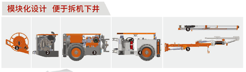 ZGYX-811針對窄薄礦脈開采方式及巷道尺寸特點,專業(yè)化設(shè)計了具有高通過性的超窄鉸連拉式懸浮度盤,非常適合于地下超小巷道轉(zhuǎn)場作業(yè)。用采用模塊快拆連接的組合設(shè)計,可非常方便的實現(xiàn)整機分段拆解下井及井下組裝工作。